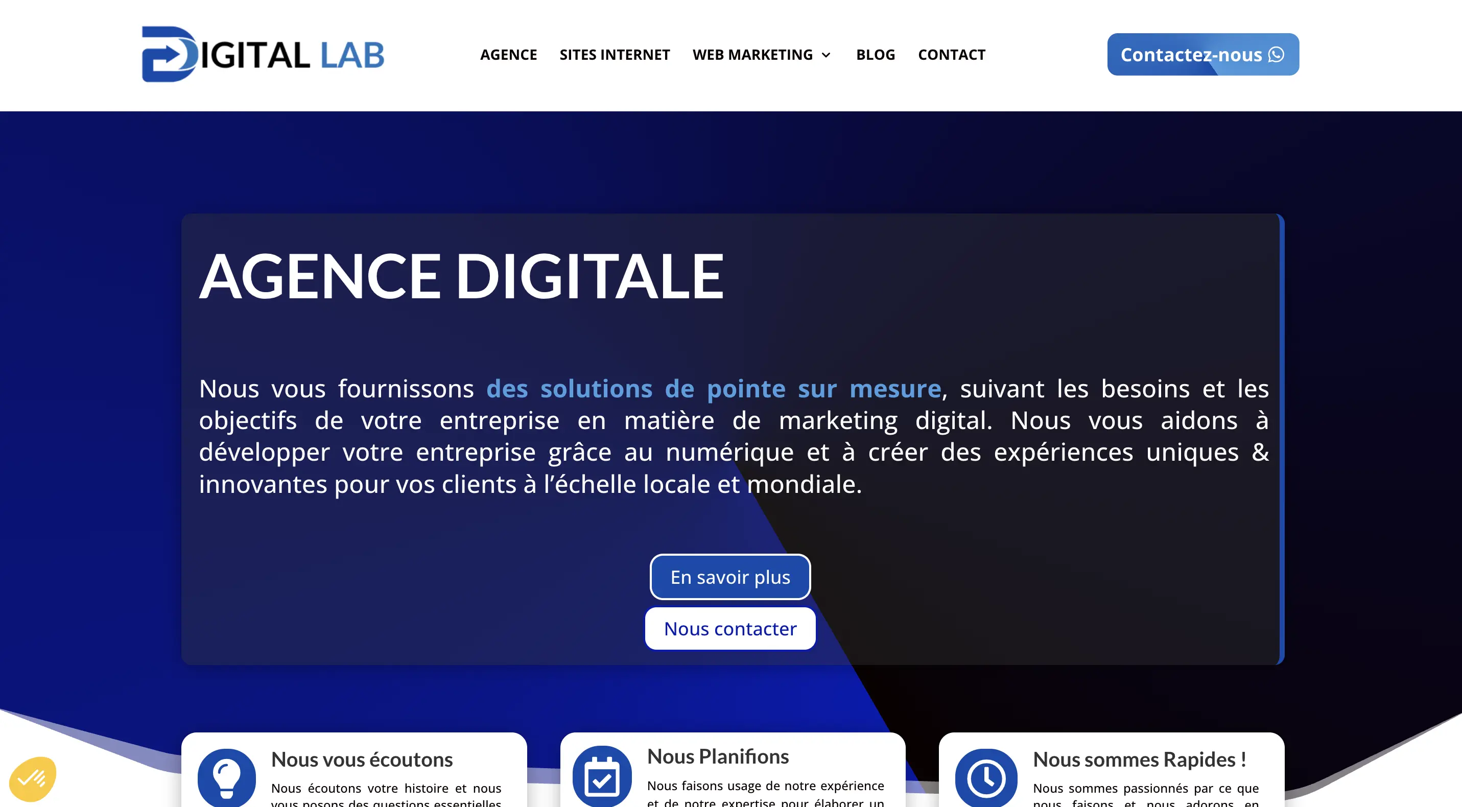 Digital Lab est une agence digitale offrant des solutions sur mesure en marketing digital. Elle se spécialise dans la création de campagnes publicitaires sur les réseaux sociaux, l'email marketing et la conception de sites internet, avec une approche orientée résultats.